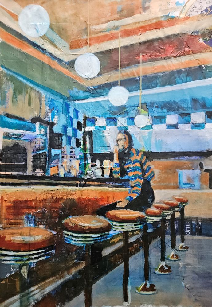 Collage, acrylic and pencils on paper