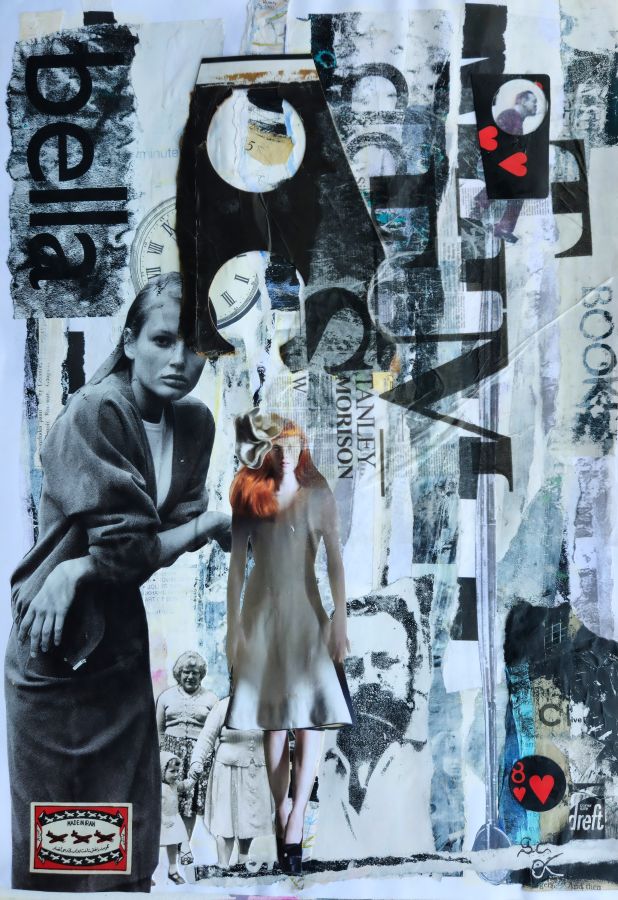 Mixed-media collage on paper